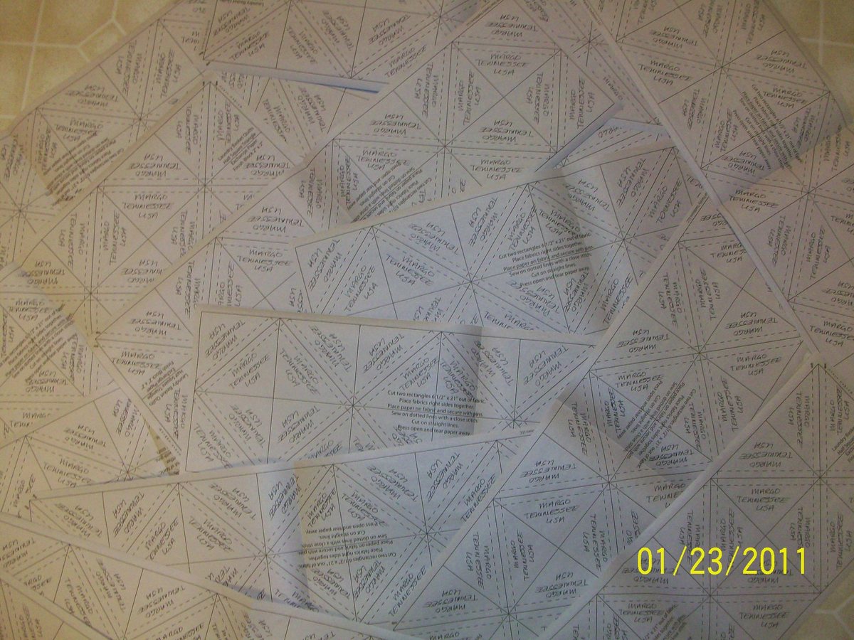 oof!Originally posted by MargoWHEW! After writing my name, state and country on about half of the package of Edyta's triangles I can report that: