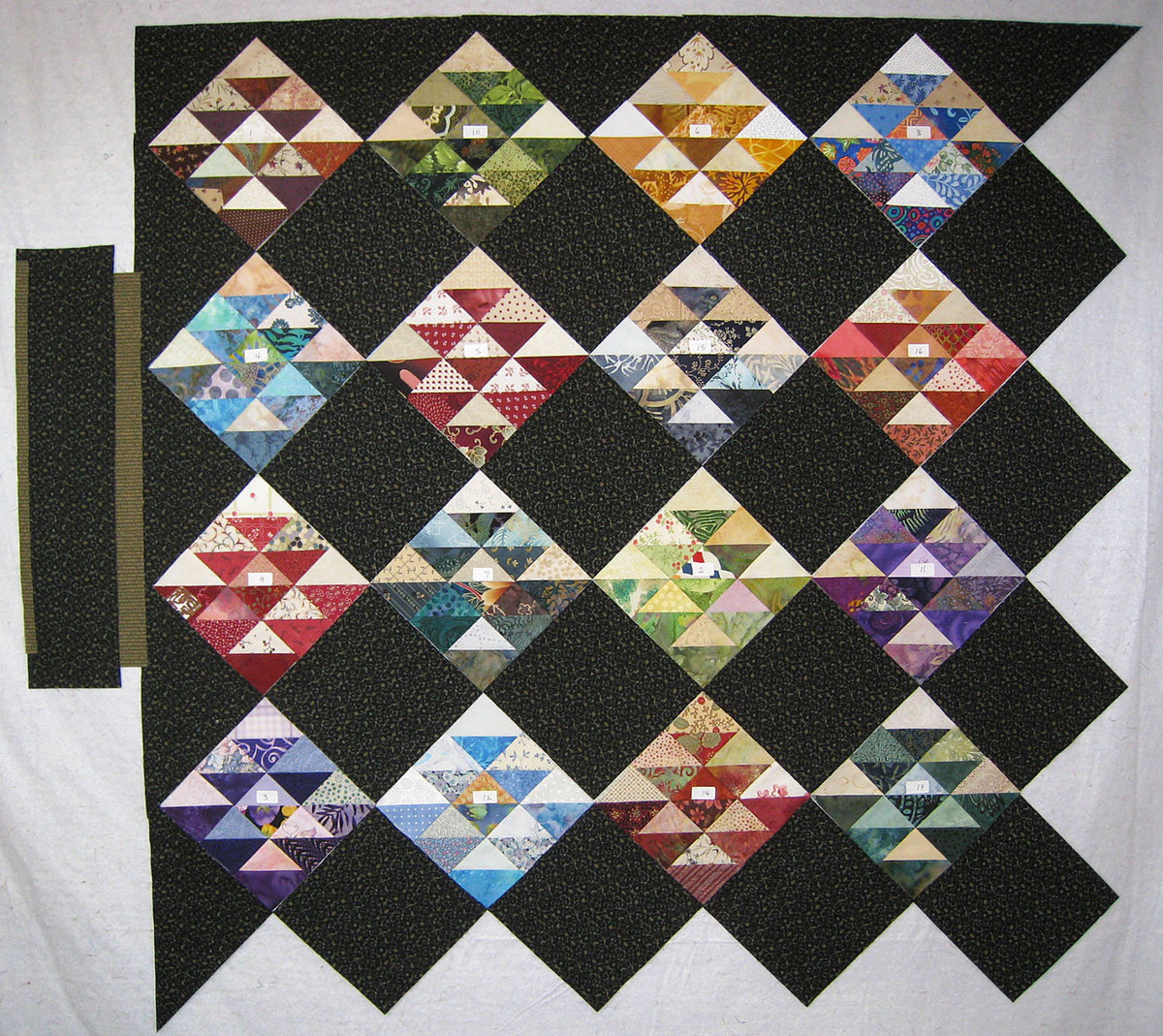 Thank you, thank you, thank you! I appreciate all your opinions, and have tired my arms out working on the design wall (back of a vinyl tablecloth), making so many variations. And I thought I was almost finished! :roll: ... so I'm going to let these ideas incubate a while. I find that it works best if you let things muddle around in your head for a while. But I honestly thank you for your opinions. I think I'm going to keep the flying geese, as some of those birds flew all the way from Australia, or Scotland or further. That was my intention in keeping all those duplicates. Like, "If you get lemons, make lemonade", if you get doubles in a quilt exchange, make flying geese :lol: Every one is special, right? Margo, thanks for your super idea, I love your quilt idea - I put it up on the wall, and really liked it. However, I'm not very good at fancy quilting yet, and I only have a domestic machine. I may hand quilt this. Machine quilting makes me nervous (but I'll get over it - someday)