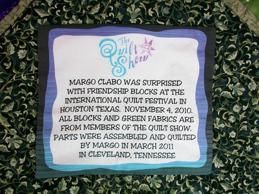 Annis, zooming in on your photo, I think your background fabric is similar to what I used on the back of my Friendship Bouquet quilt. I used a medium value sage green Bottom Line thread, and was very pleased with how it looked.