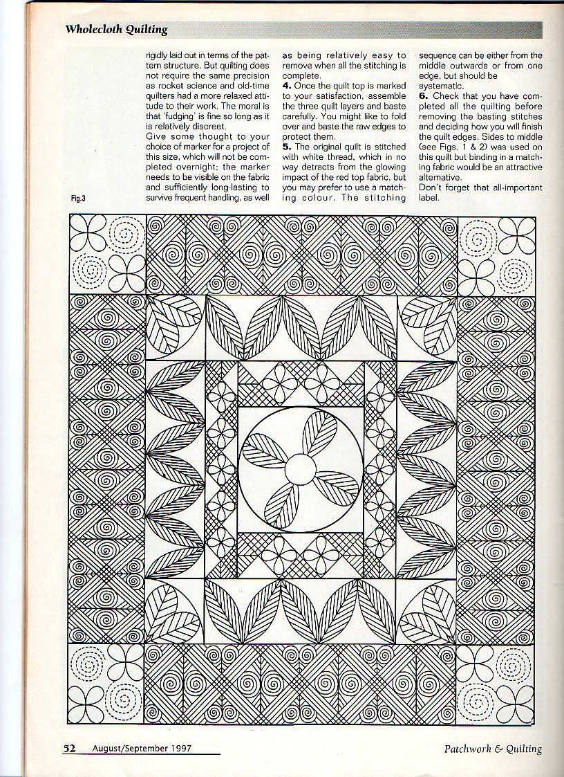 There are two main traditional styles of quilting in UK, Welsh & North Country (also called Durham quilting). I reckon if I use the Welsh style as my basis for the quilting I won't have to worry so much about lining up the not so square squares! 8)