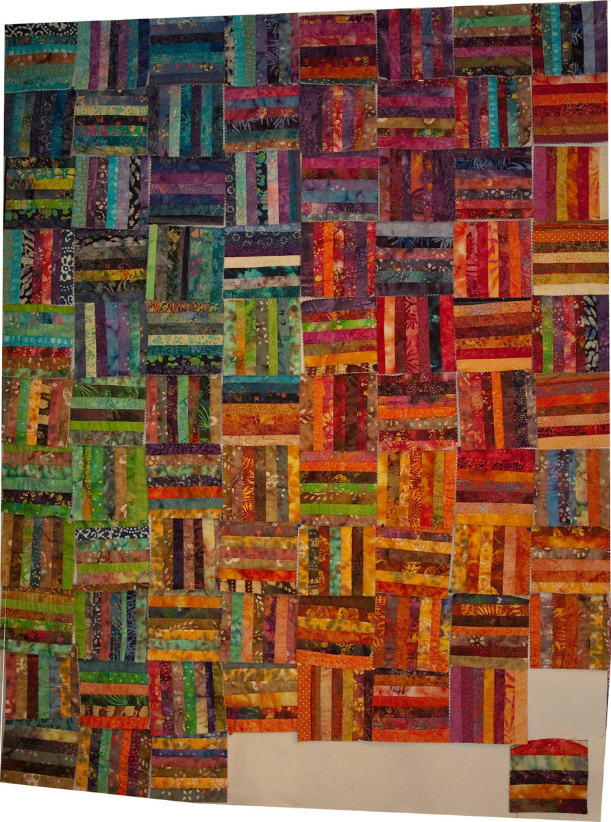 STRIPPERS top still doing; this one i've been working on steadily since we started - still have many of the blues, all the greens and the beiges to go; this is truly a quilt-on-the-go project, and i quilt wherever i've a little time and/or need to wait for something - a zip-lock bag or the little tupperware is always with me. all the strips and many of the prepared batting and backing squares are with me here in paris - ready to mark and turn into squares. apparently it's not the done thing to sit/stand behind the counter and quilt patches as i'm talking to our colleagues and customers at a cardiology congress :roll: (well i did know that - but there are times when i can catch a few minutes: waiting for folks in the hotel lobby - sitting at breakfast - ?on the train? this has been standing room only so not much doing there..., but i'll have an hour on the flight home. it will get done by end december - i'm certain to take a couple of weeks off around xmas as i still have most of my 2011 vacation due me - but won't have time to take it before then :?