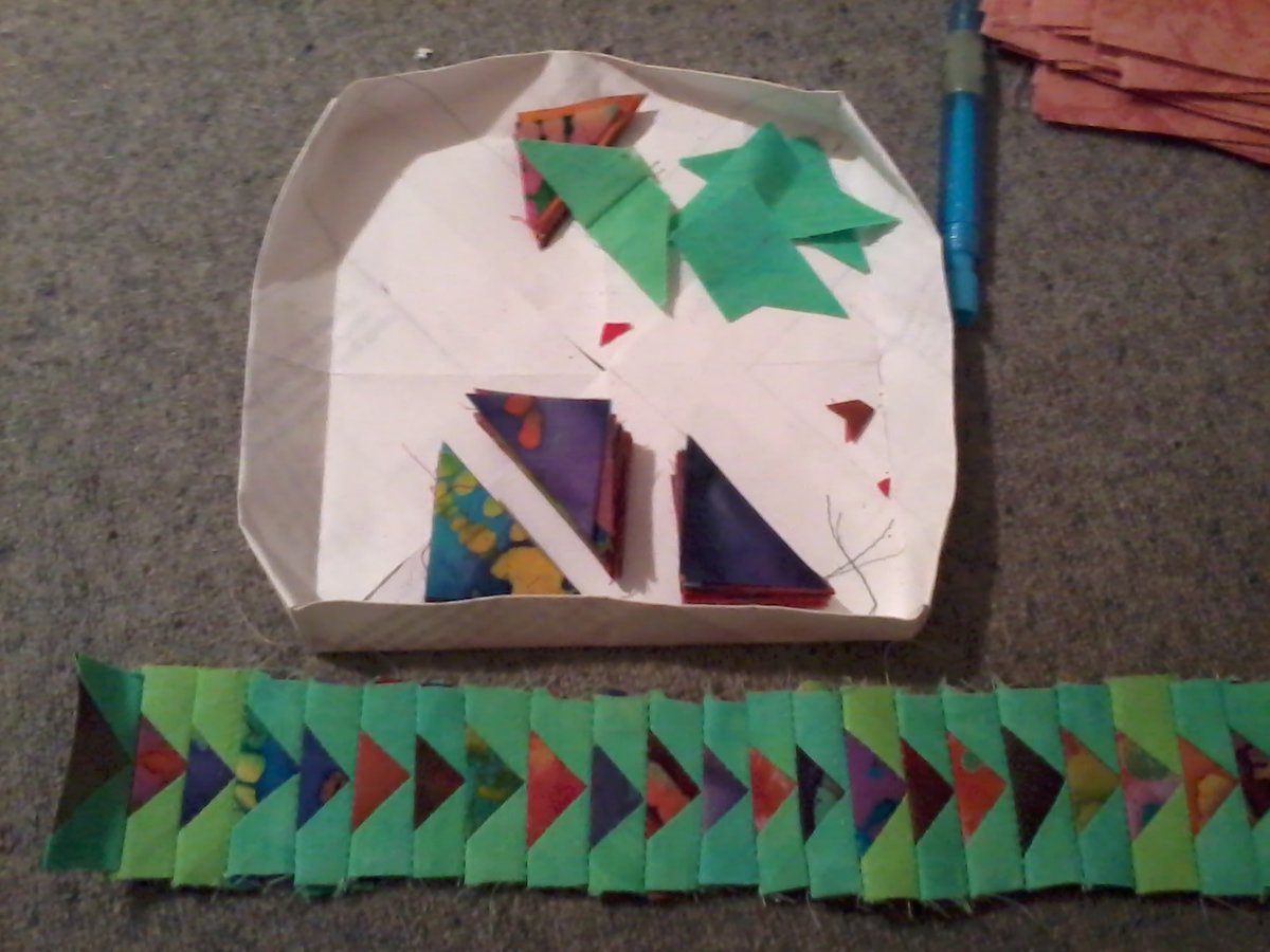 Oh Carole, it's so good to know I am not alone in seeing things back to front! :lol: I am doing the smaller version too and had my calculations all wrong so I only have 100 to do as well. That meant that I only had to redo 1/2 of my chevrons. :roll: It wasn't too difficult really, I just folded them over sewed the line on the opposite side and then ripped out the line of stitching on the opposite side. All done now and ready for next week. Did you save the little bonus triangles? I did and now have a lot of 1 1/2" HSTs. They should come in handy for something, somewhere, sometime.