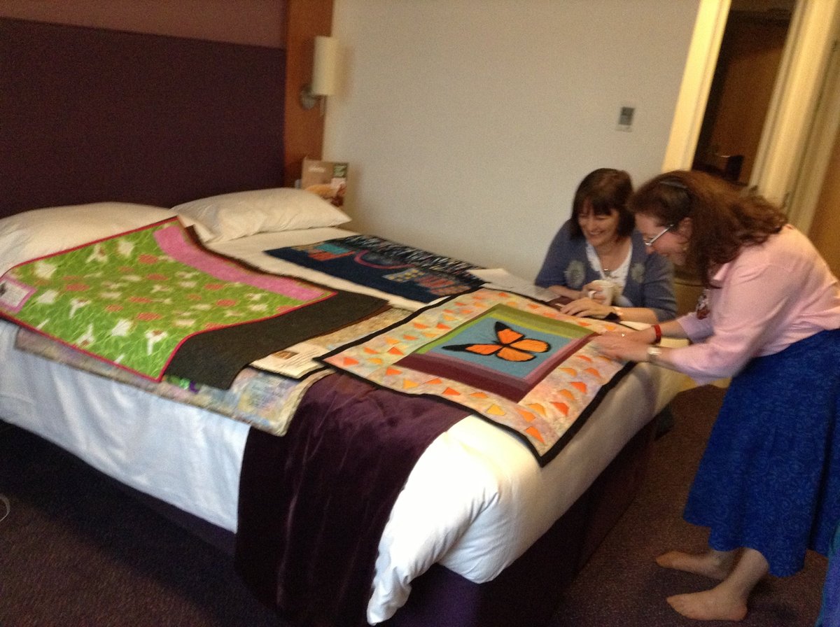 Lorna volunteered to send the American contingency quilts back to the USA from her military base so please get in touch with her regarding postage. She brought a suitcase just for them. Wendy and Rosemary are taking their own back and Wendy has said that she will post Rita’s to her which is very kind of her.