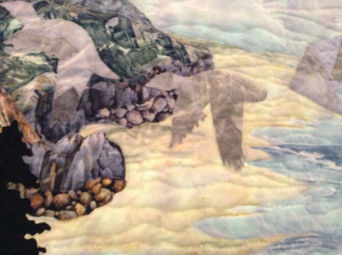 I also had to scrounge some pale indigo scraps from Maureen for my sky - and Lorna following on from our discussion about how can you tell if it is a sunrise or a sunset - having checked out sunrise skies this morning - I think it has to do with the quality of the blue, rather than the skyblue pink colour, the sunrise blue is softer than the sunset blue.
