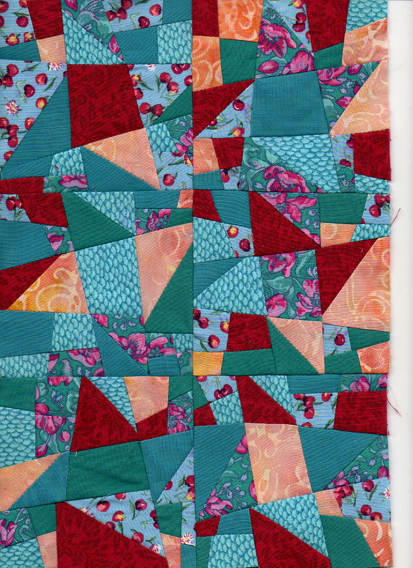 The colour balance is wrong, there is far too much dark red, and peach, but I only used 7 x 6" square pieces of fabric - there should have been nearly twice as many blues to achieve the same sort of balance as the original had. I think I achieved random reasonably ok - random means if 2 pieces the same end up next to each other then so be it (I think). Personally speaking I am rather glad that this piece is going to be headed for AAQI, because it is not something that I would chose to live with, I prefer things to be much more orderly. ESS is going to be something of a cow too (if I don't decide to skip it :wink: ), I might go with NESS instead :P