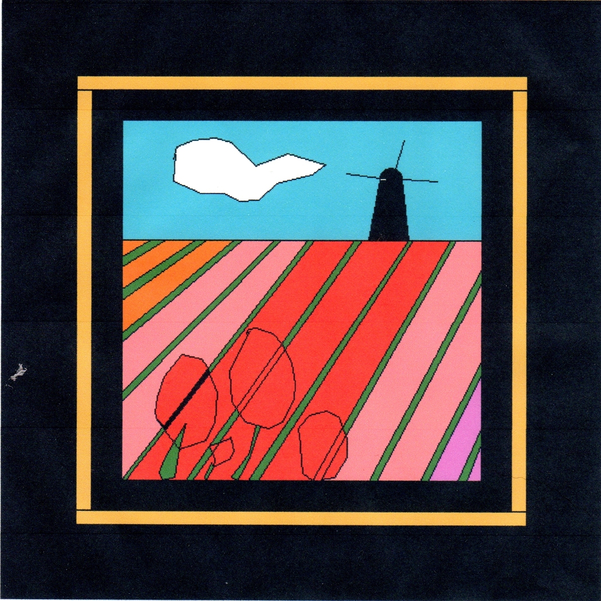 The tulips are in different shades of red, orange and possibly magenta and are stylized in rows but to render the concept, the realistic tulips are in the foreground. The blue in the Red Fury quilt reminded me of blue skies and the green of the leaves and stems of the tulips. The border of Red Fury quilt reminded me of a Delft blue color and that is why you see a windmill in the background, reminiscent of something from the Netherlands. The real problem with this interpretation is that the original design may have had nothing to do with springtime, or someone might interpret my quilt as related to the Netherlands, and therefore, my rendition could very easily send the next quilter off into never-neverland... which brings me, at least, to the conclusion, that I would try to make a quilt that has some traditional aspects possibly, but only secondary to the message I am receiving when I look at the quilt that comes to me. I would really try hard to interpret a message that the quilt I receive gives me. Just a thought... and if I rambled and this post makes no sense to you, let me know... :lol: