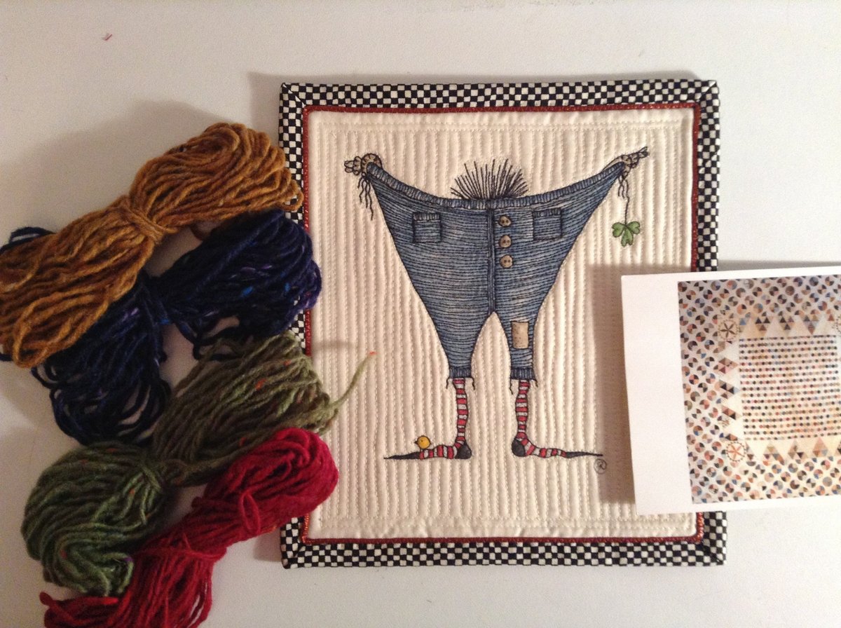 Now then I had a trying day at work but it all changed when I came home and found a package from Ireland with a bunny stamp. Wow the mug rug inside is amazing I keep stroking it,your quilting is superb Rita. Thank you so much for taking so much trouble for me. Some Irish yarn as well and a card.