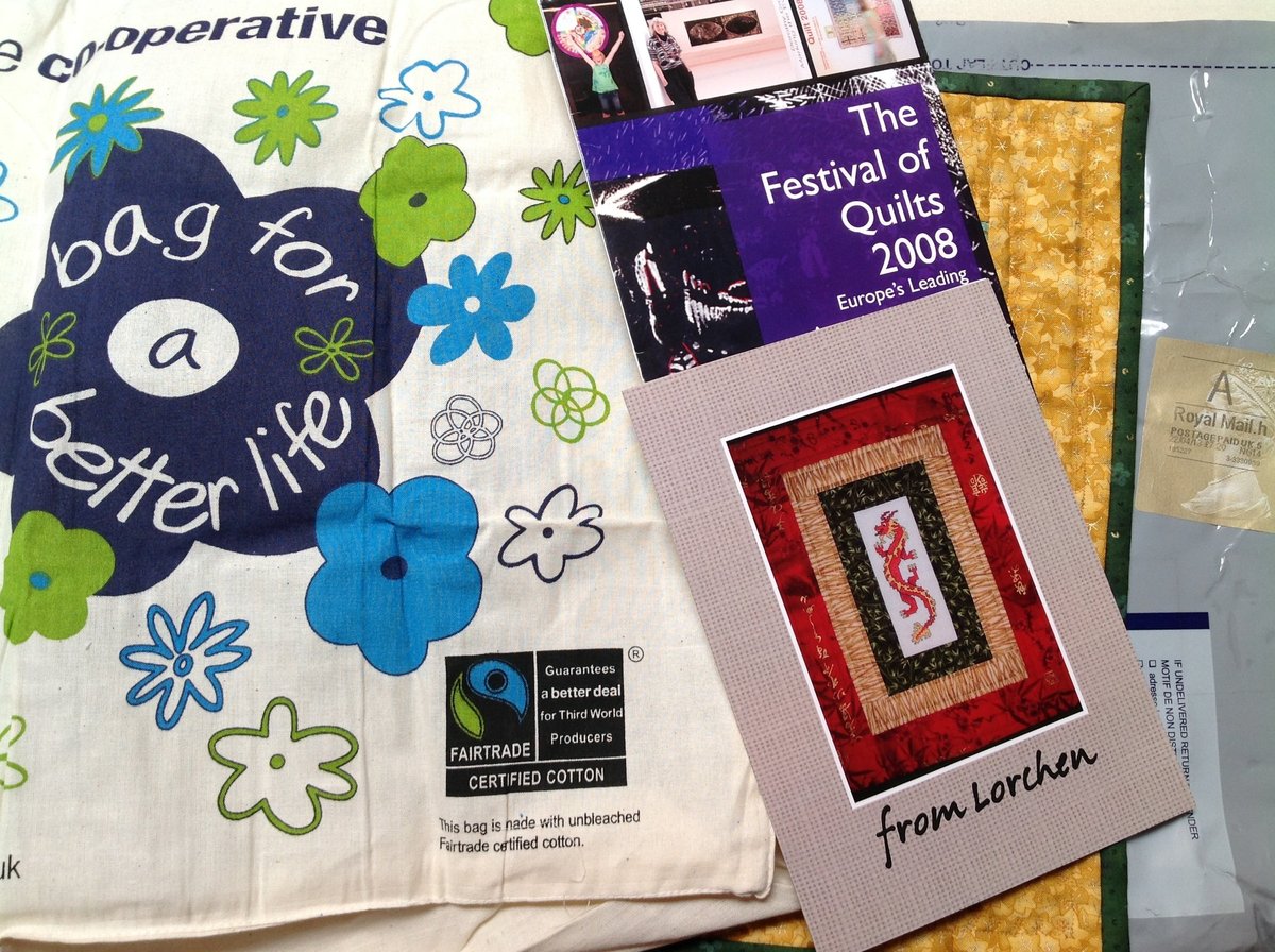 Got this beauty on the mail a few days ago. Not a mug rug but, I thought you might enjoy seeing it. In the begging I couldn't figure out whom it was from. Royal Mail but, the name didn't sound familiar. And just suddenly, right before finishing opening the envelope I thought, Lorchen!