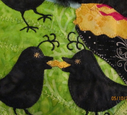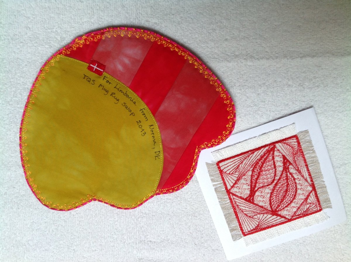I want all of my LL MR friends here to know that I think about you many times a day, especially when giving my back a break from stitching & take the time to read and see all the beautiful mug rugging going on. I'm starting to dream about the day my Quilt Alliance quilt is done so I can stop worrying about every little stitch and wondering if it is "good enough".