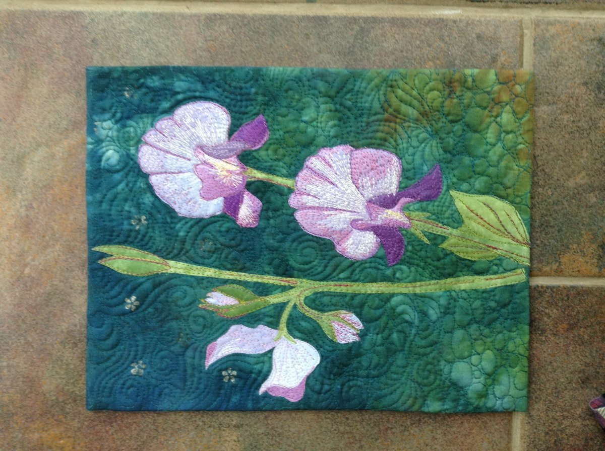 Yesterday (37 years ago) my mum was alive. She loved sweat peas and grew fabulous show ones so this quilt is for her