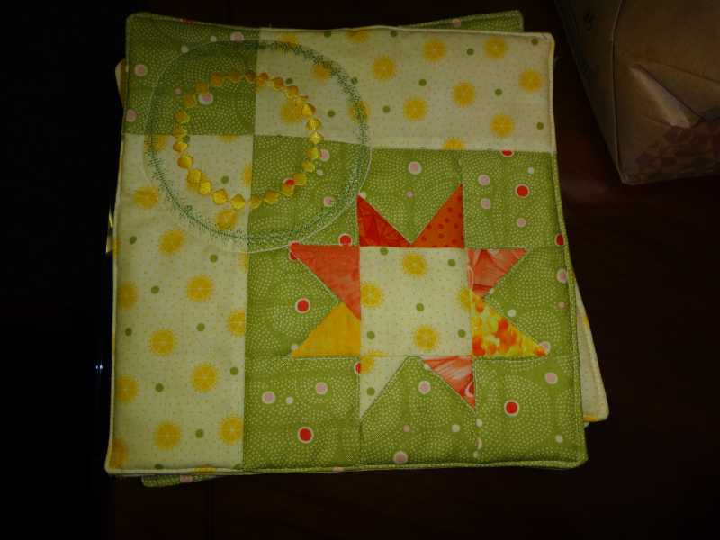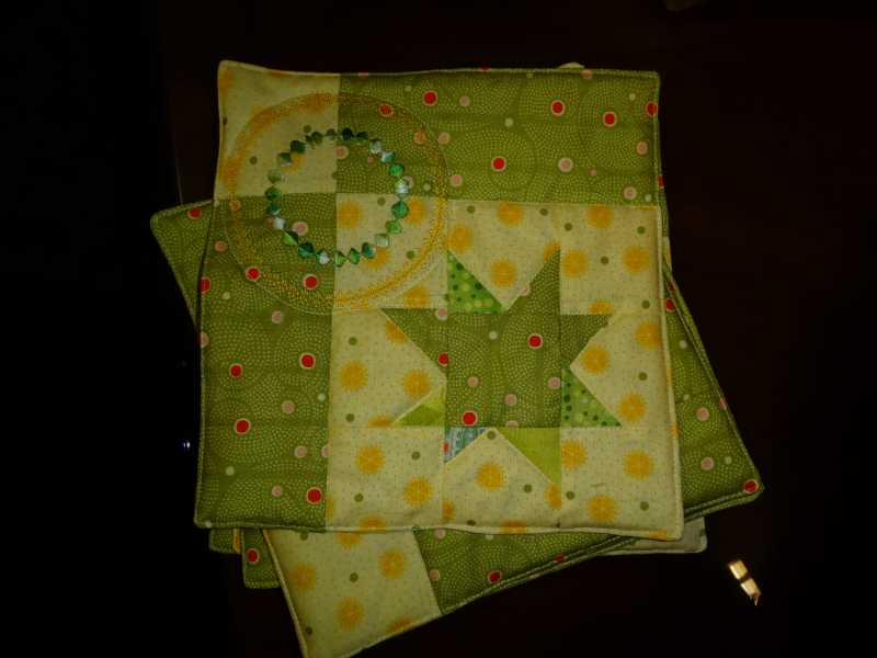 23 mugs rugs from left over fabrics, a few decorate stitches and Bonnie's star pattern.
