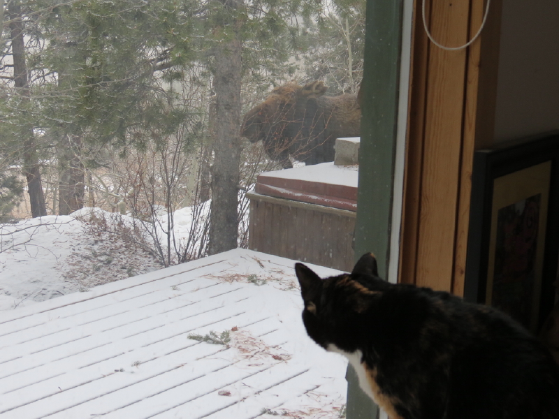 I'll make a moose quilt some day, but it's part of a long list. We also get bears in the yard, but they are more nocturnal so it's harder to get pictures. And are, of course, hibernating right now.