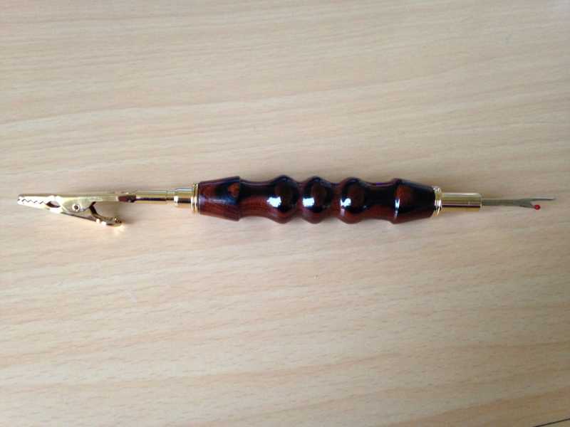 It is made by Scott Lincoln in Clinton Washington. He is a veteran that is retired and makes pens to sell as well as give to veterans. His wife Cindy is a quilter and makes Quilts of Valor for veterans. www.s-c-handmade.com or www.finewoodpens.com