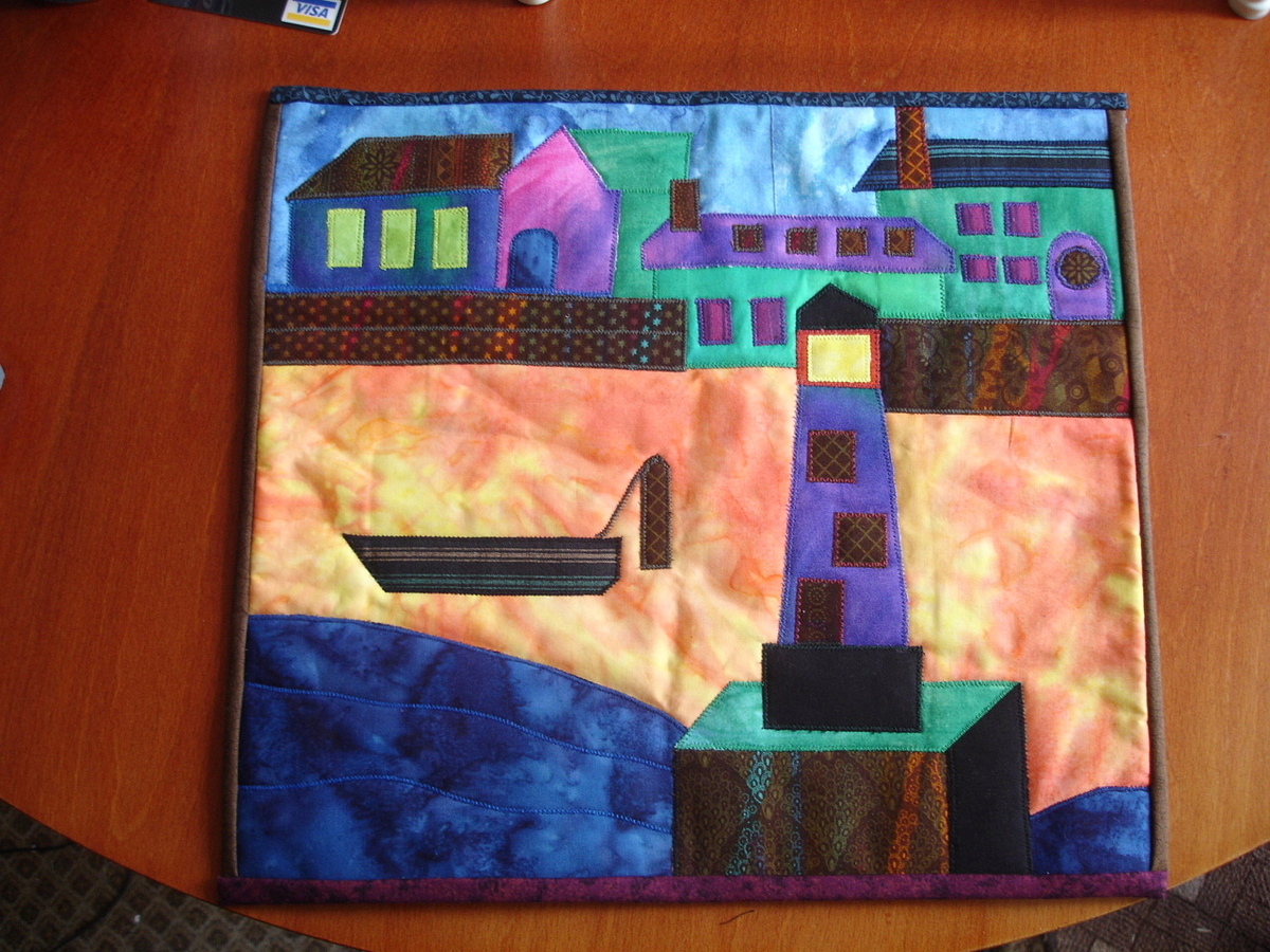 I can't remember the exact title, Teresita. But it had nothing to do with lighthouses. We all designed our own piece with guidance from Alicia. I quite often go to workshops and then afterwards don't finish what was started. But this one got done. Using colours to support shapes, rather than trying to keep everything 'natural' was a new experience for me.From the edge of Sherwood Forest, home of Robin Hood