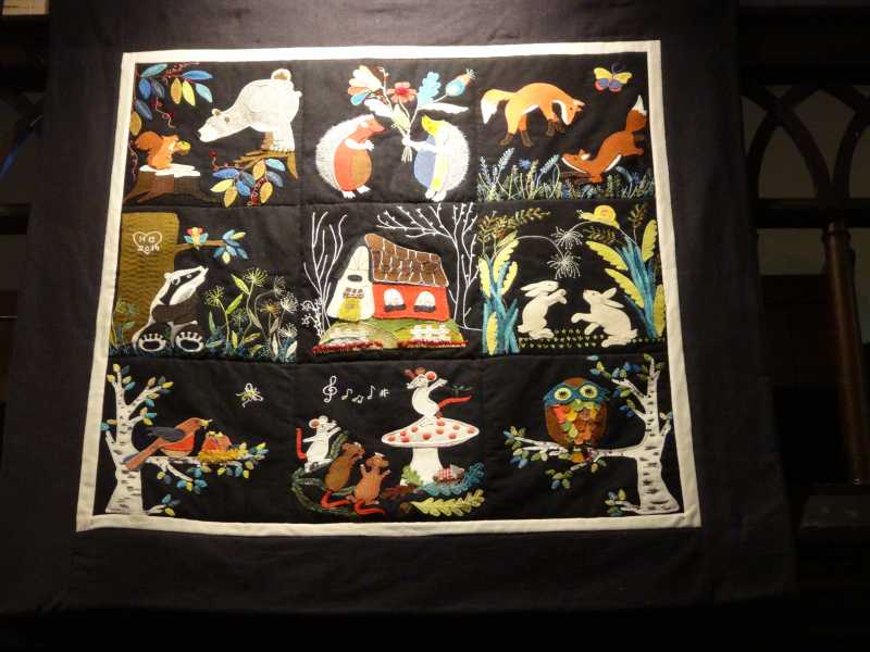 This exhibit (#12) was called "Modern Stained-Glass." The Val Patch association (local quilt quild?) displayed some of their works with each artist following his or her imagination. They also had a display called optical illusions.