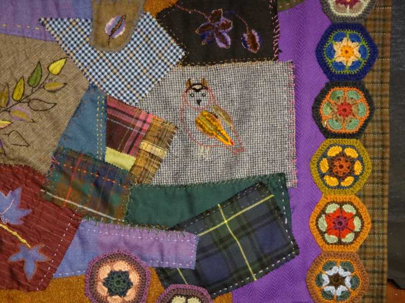 This one is call "A tire de Laine" by Kachelhoffer Claudine. I did the close up to show her use of crocheted granny squares! How novel!