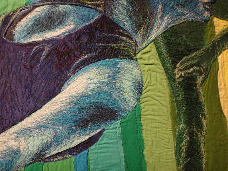 The next exhibit was by Pam Rubert of USA called "Threads of Thought". She had several quilts on display. Her style looks familiar. Was she on The QUIlt Show or featured in The Quilt LIfe? Seems I have seen her work before.