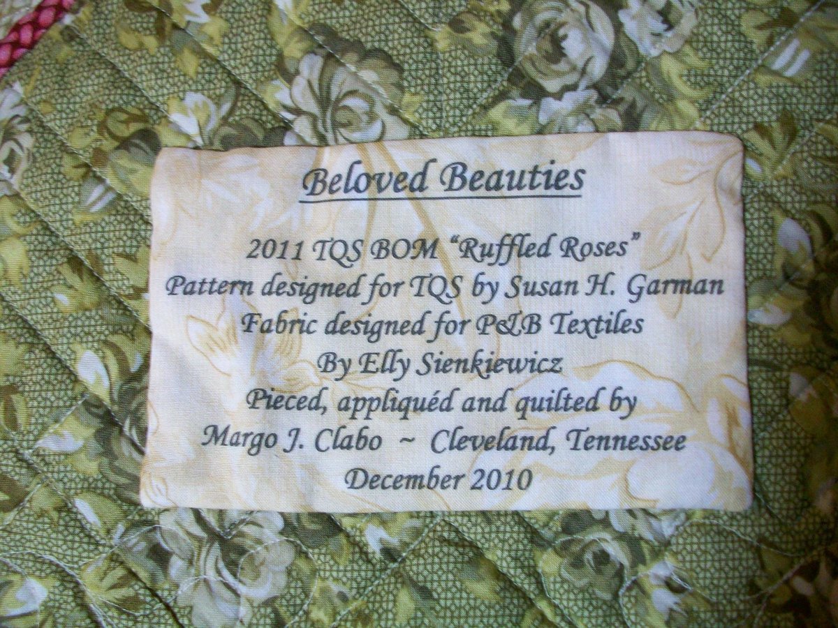 THE information such as quilter/ long armer / fabrics GO on the flyer that is placed on the front of the quilt when displayed in shows. But I do not feel it is appropriate to have them on a family quilt... GIFTEEs do not care about who quilted the quilt but who made the quilt for THEM.