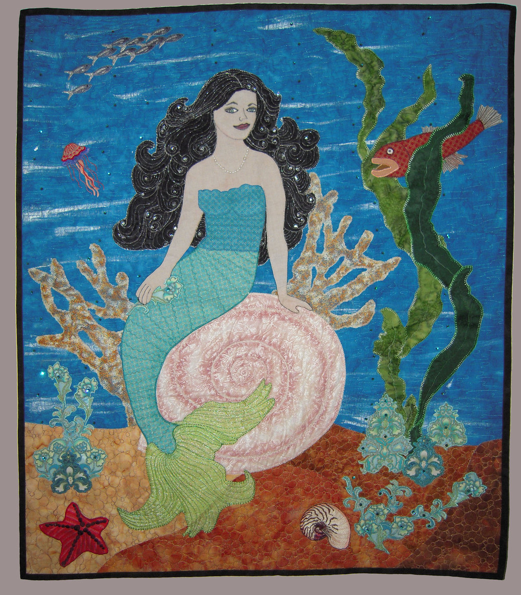 Oh I got the most delightful mail yesterday. My Mer Folk Fantasy (mermaid quilt) was juried into the American Quilter's Society Lancaster, Pennsylvania show. That show is March 14-17. According to the press release that came in the package there were 201 other quilts selected for the show. I'm happy. For such a little quilt (26 x 30), it was a lot of work but I really enjoyed making it. Will anyone else out there in TQS land have a quilt in the show?
