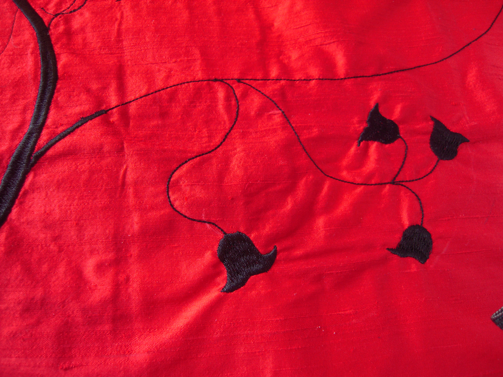 Well, this has been a good day. I managed to prove to myself that I can stitch the thinner vines by bobbin work on my birds-in-a-tree piece satisfactorily, thus not requiring I start over.