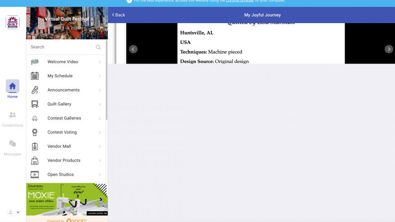 Right now I can see my quilts and the info placards full screen, no problems, on my Desktop--using Chrome.