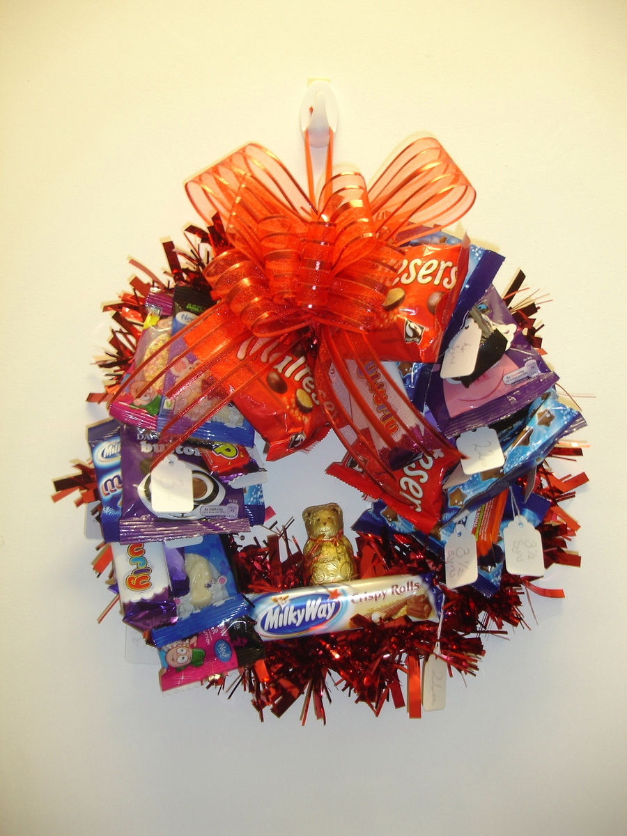 A couple of days ago I was given a quite unusual advent wreath. It contains 25 chocolates (just like the ones you can buy in a shop), but this one is different. Every chocolate has a little label attached with it's 'syn value' (very similar to calories). It tells me exactly how to control all this 'naughty but nice' stuff, and will keep me on track, so that I don't put on a lot of weight in December. And it looks gorgeous!