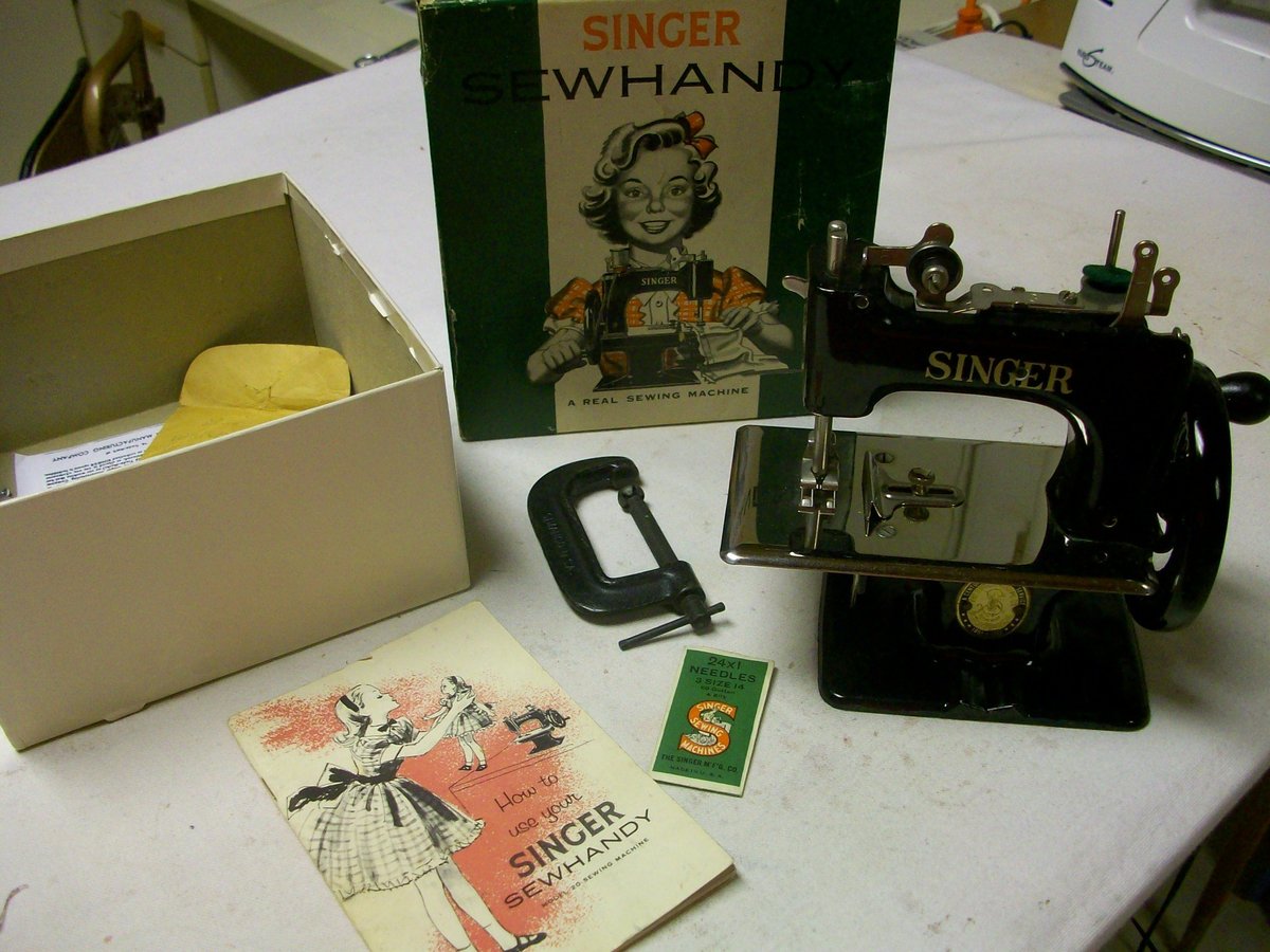 Oh Margo! It looks just like the little machine I had when I was a child that my Mom gave me and I made countless Barbie doll clothes on. Congratulations on your "big ribbon" and your little machine! CheersOriginally posted by MargoCongratulations again, Robin on both the win and the new serger! Have fun with it! I won a little money from AQS with "From The Heart" and also used some of it for a machine, but I already have a serger, so this is the machine I got! Makes a great momento of the year I won a big ribbon!