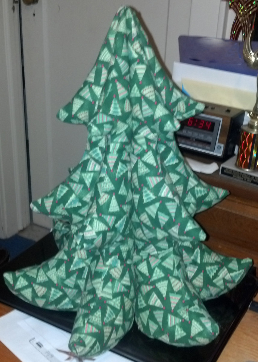 I bought Amanda Murphy's book over the summer, wayyyyyyyyy before the current marking blitz, and approve very much of TQS featuring her. She's very fresh and has a very cute eye and approach to design. I just finished her 3-d tree, and attach a photo. Her directions were very good and NOT confusing (unlike 99% of time - I find that most pattern instructions - whether it be for a quilt or purse, etc. are confusing and poorly written). Due to lack of time, I couldn't make anything more from her book, but still hope to do so for next year's holidays. I am still working on projects on my plate that need to be finished.
